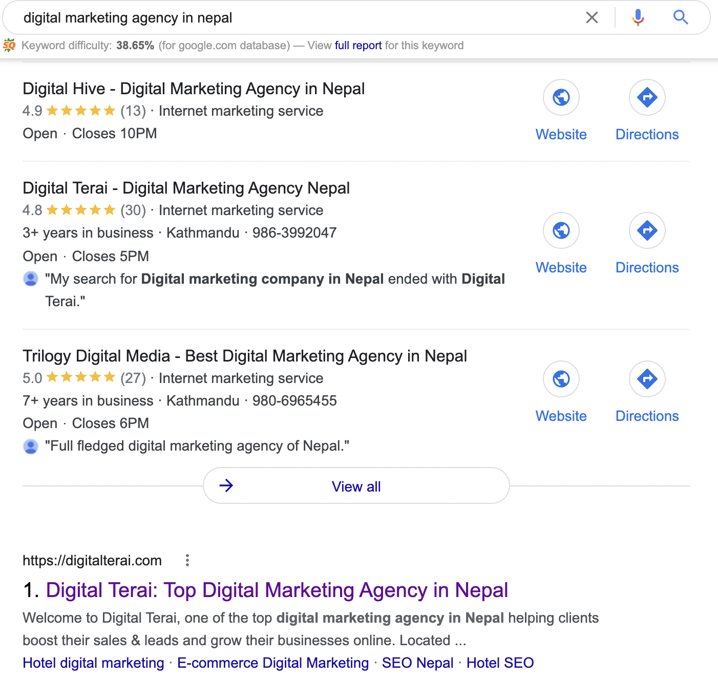 Even for our own brand, we have extensively invested our skills & effort in website optimization. That’s the reason we rank for a lot of keywords related to SEO & digital marketing in Nepal.